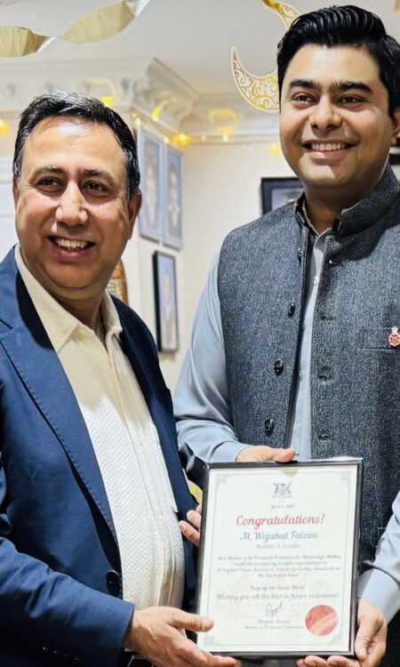 Upon his admission to the Law Society of Ontario as a qualified Barrister and Solicitor, Wajahat elevated the honour and pride of the family. It marked the first time in the family’s history that a lawyer had achieved professional qualification in three jurisdictions, Pakistan, the United Kingdom, and Canada. In recognition of this rare accomplishment, and of his ability to bridge legal systems while upholding the highest standards of the profession and the family’s guiding values, Maulvi Soltan Alam, along with other esteemed elders, formally conferred upon him the ancestral title of Maulvi Muhammad Wajahat Faizan.
