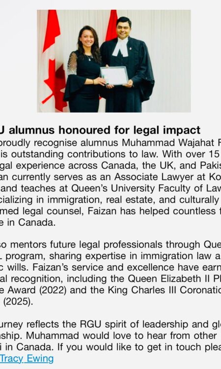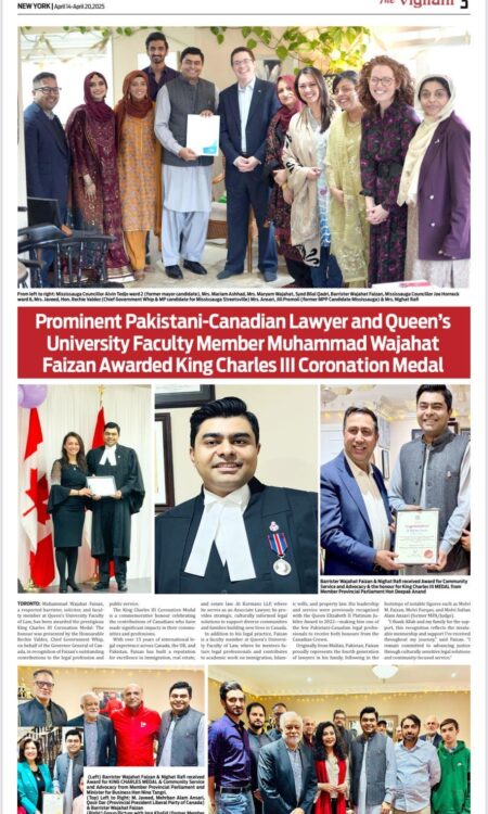 For Wajahat, every client served, every student taught, and every public initiative undertaken is part of a larger story, one that began in the courthouses of Multan and continues in the modern legal and academic institutions of Canada. “Law has given me a platform,” he reflects, “but community gives me purpose.” It is this balance of professional excellence and public service that defines his journey and ensures that the legacy he carries will endure for generations to come.
