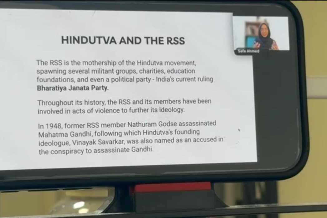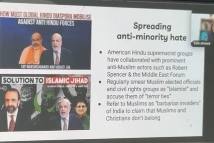 WASHINGTON, DC – A detailed presentation at a South Asia policy forum has exposed the violent history and global spread of Hindutva, a right-wing political ideology based on Hindu supremacy. The speaker explained that Hindutva is not the same as Hinduism, which is an ancient and diverse religion. Hindutva, the speaker said, is a political project aimed at excluding minorities through violence and supremacy.