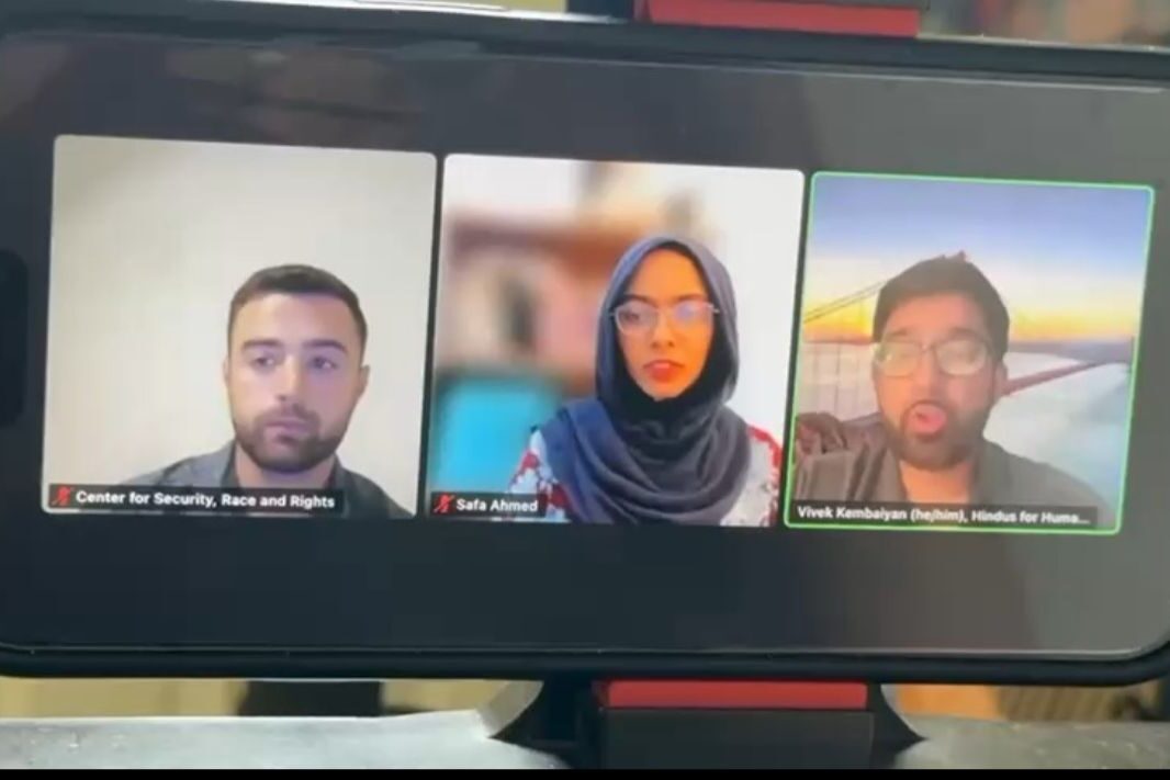 The speaker said Hindutva is not just an India or foreign policy issue. It threatens American democracy, pluralism, and all who oppose rising fascism. Resources include the CSR report on Hindutva in America, the Hindutva Harassment Field Manual by South Asia Scholar Activist Collective, and SEA coalition reports.