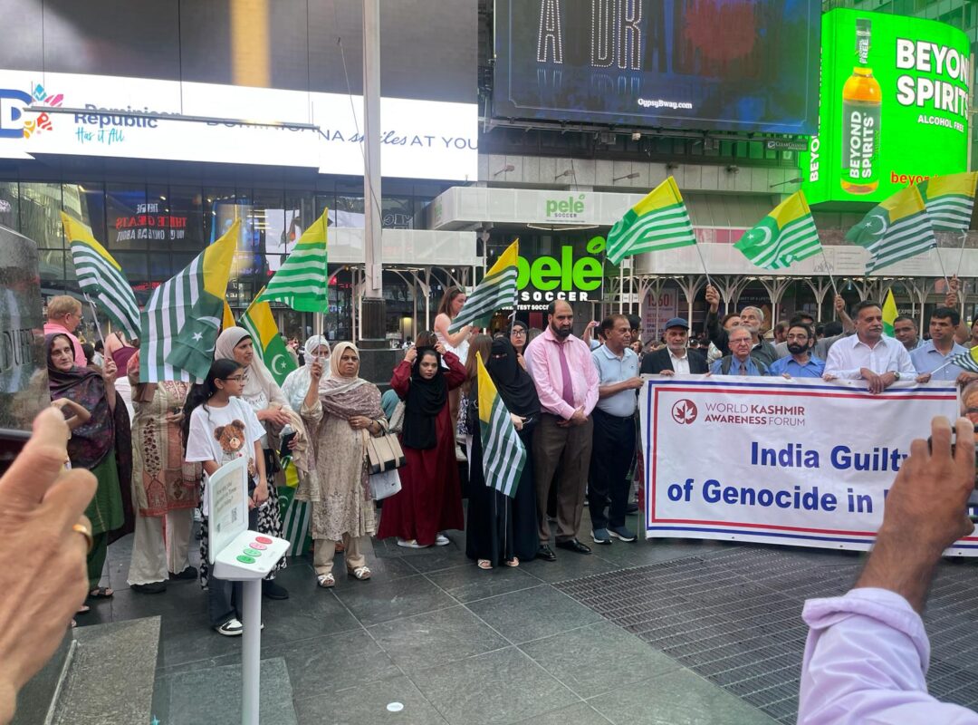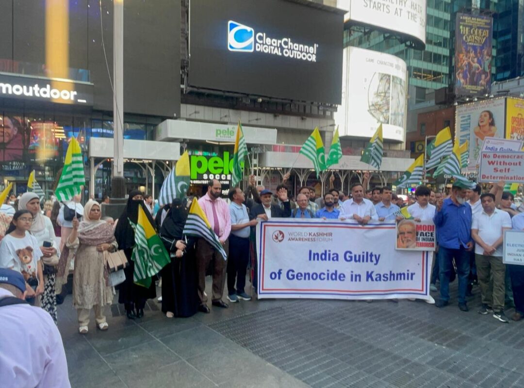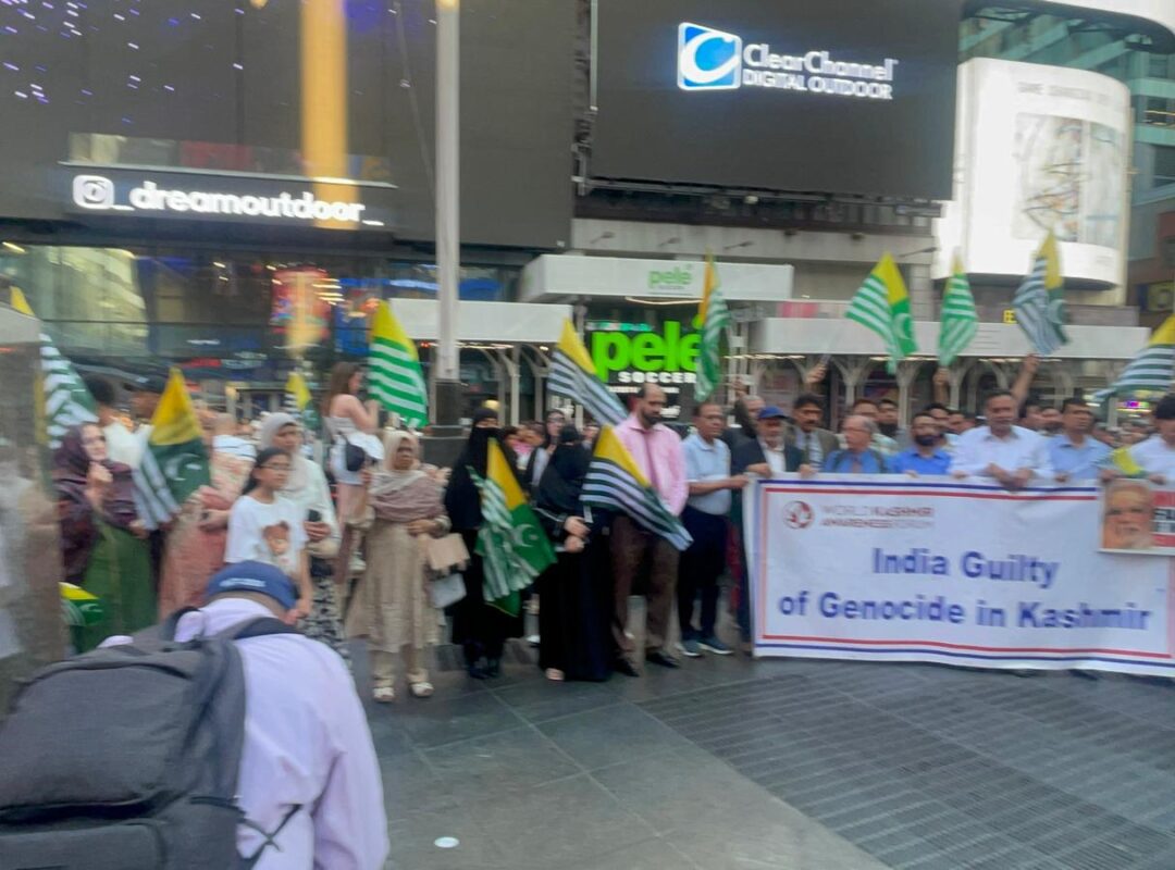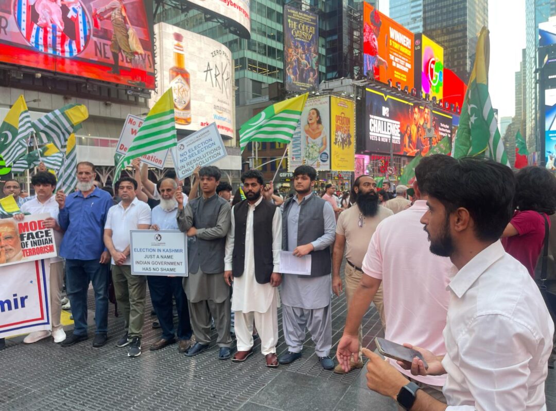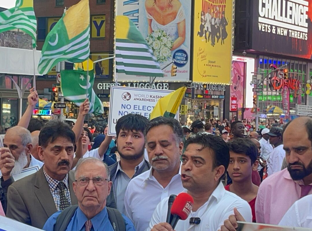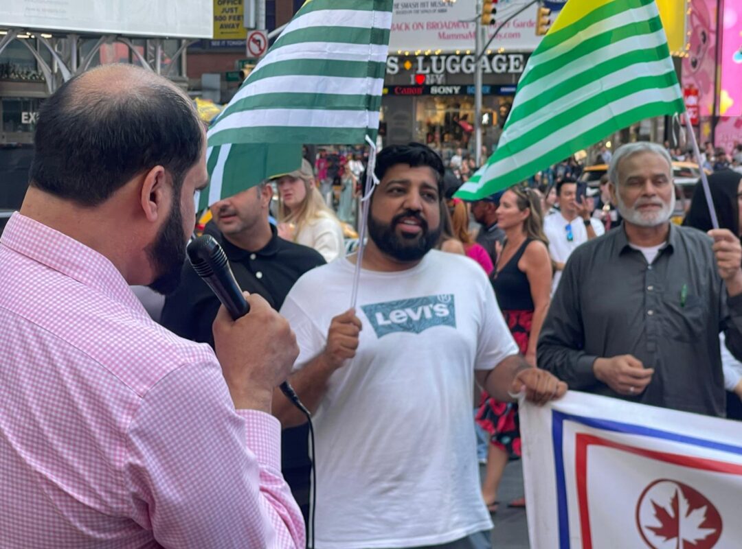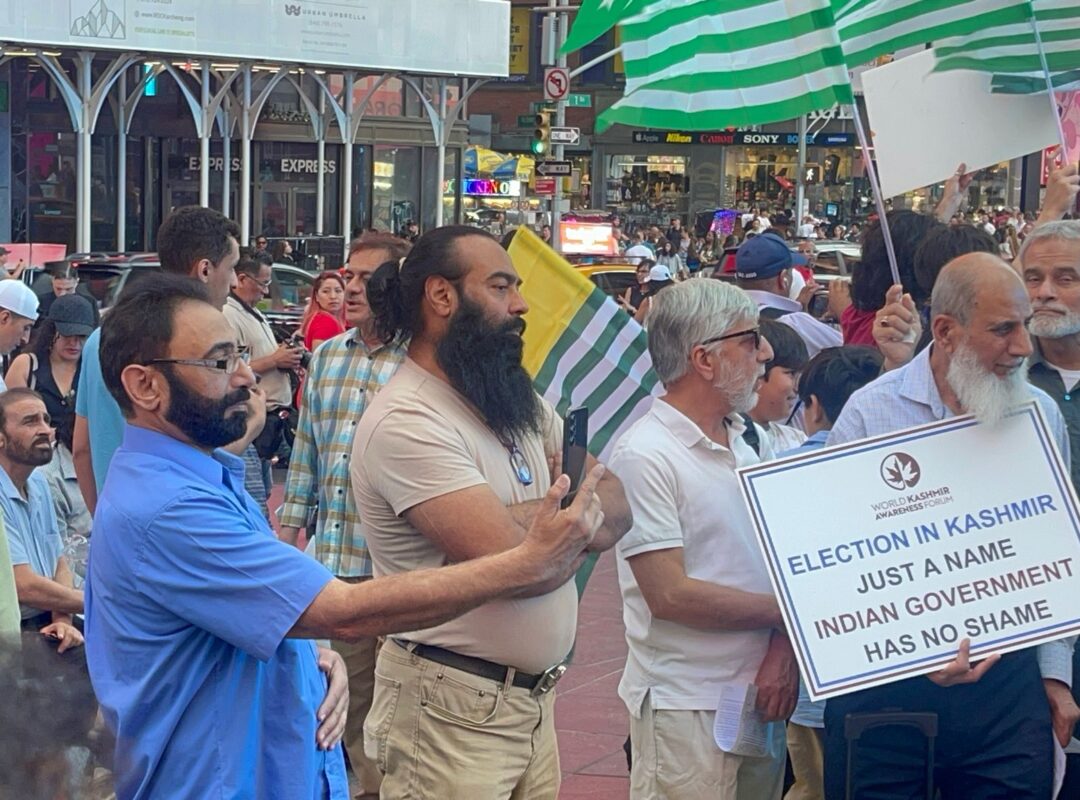 He called on the community to gather in Times Square from 5 PM to 9 PM today for a peaceful protest to show solidarity with the oppressed in Kashmir.