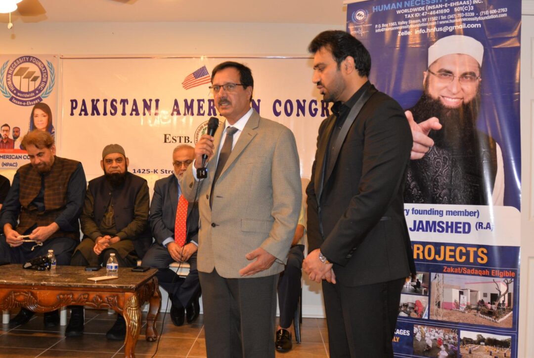 Pak American Society (PAS USA), Human Necessity Foundation (HNF), and the Pakistani American Congress (NPAC) sincerely thank Dr. Khalid Luqman Chaudhry and Madam Shakeela Luqman Chaudhry for graciously hosting this impactful fundraising event at their home. Their exceptional hospitality, generosity, and steadfast support were instrumental in the evening’s great success, uniting community members and changemakers for a noble humanitarian cause. This event was organized collaboratively by HNF (honoring the legacy of Junaid Jamshed (R.A.)), PAS USA, and NPAC, united in their mission to uplift lives and serve humanity.