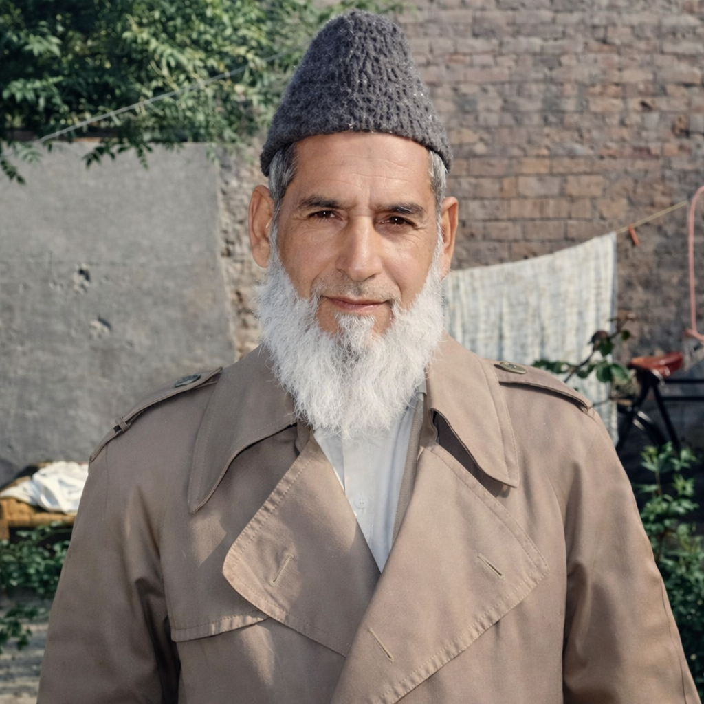 The exhibition draws its emotional and spiritual core from the life and poetry of Professor Mirza Ghulam Rasool Azhar (1940–1997). Born in the village of Madah Pur, District Toba Tek Singh, into a modest rural family, Professor Azhar rose through scholarship and spiritual depth. After early education in Toba Tek Singh, he moved to Quetta, where he began his career as a school teacher while pursuing higher studies. He earned Bachelor’s and Master’s degrees in Urdu Literature and later served as a college lecturer for fourteen years in Balochistan before continuing his service in Punjab — Mianwali, Samundri, and finally Gojra — until his retirement.
