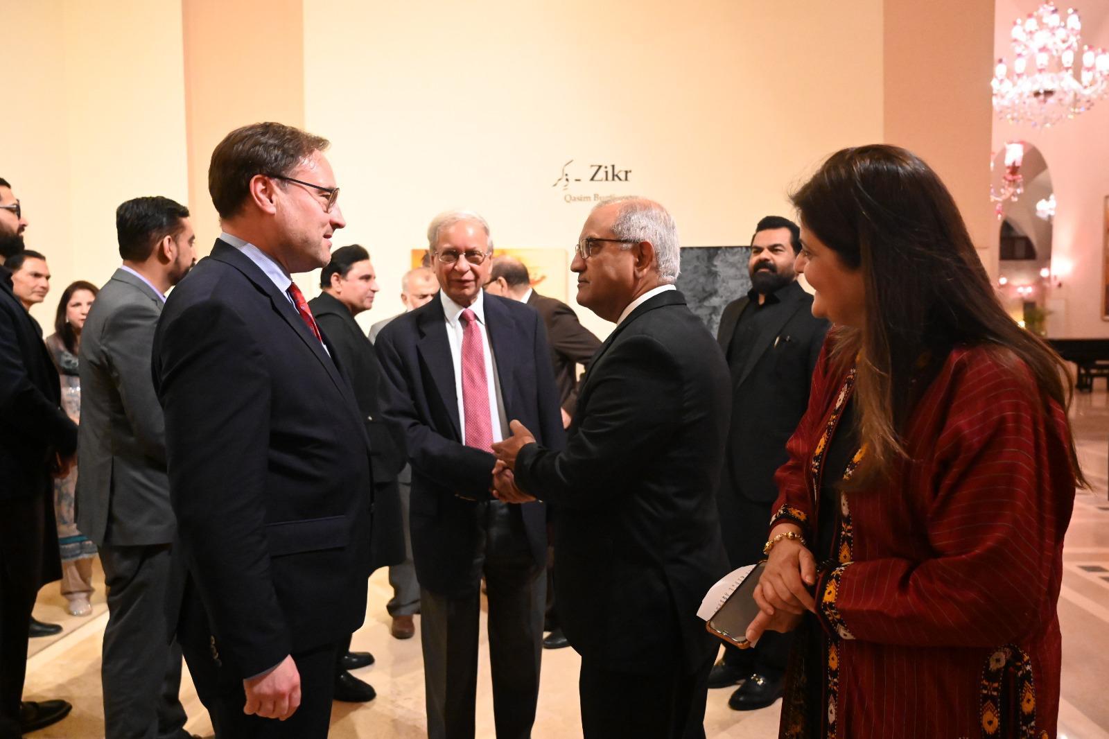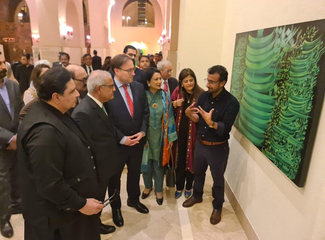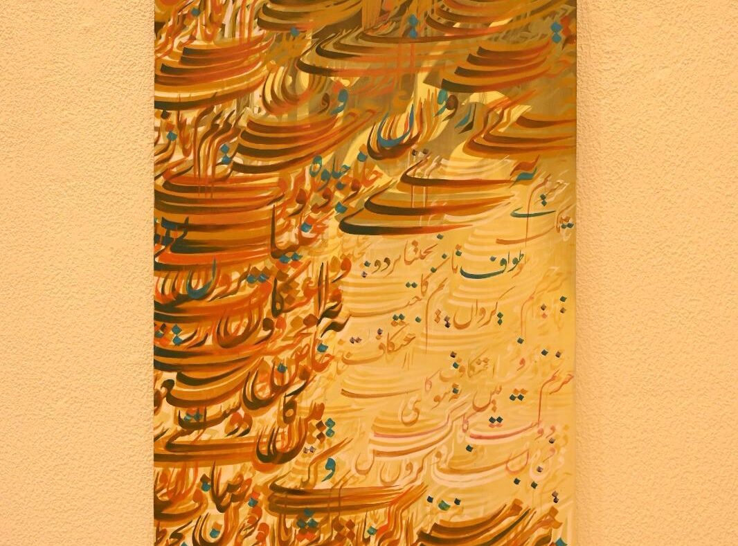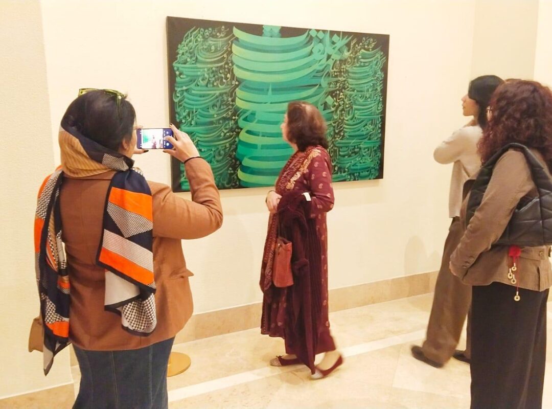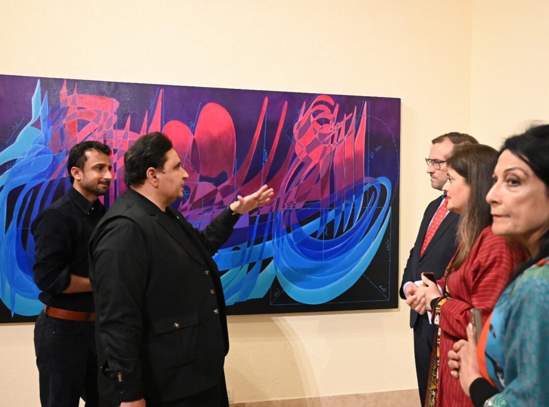 “I am the President of Azhar Construction Incorporated in the USA and the Chief Executive Officer of Qita Developers Pakistan. My father passed away in 1997. He had a book that we published two years ago—Kuliyat-e-Azhar. Then we did a transformation: from poetry to art and music. We created a book for this, and we held a solo show at String Art Gallery in Islamabad. On his ghazals and poems, Qasim Bukti—one of Pakistan’s top artists—worked on abstract calligraphy. The inauguration of this solo show happened today.