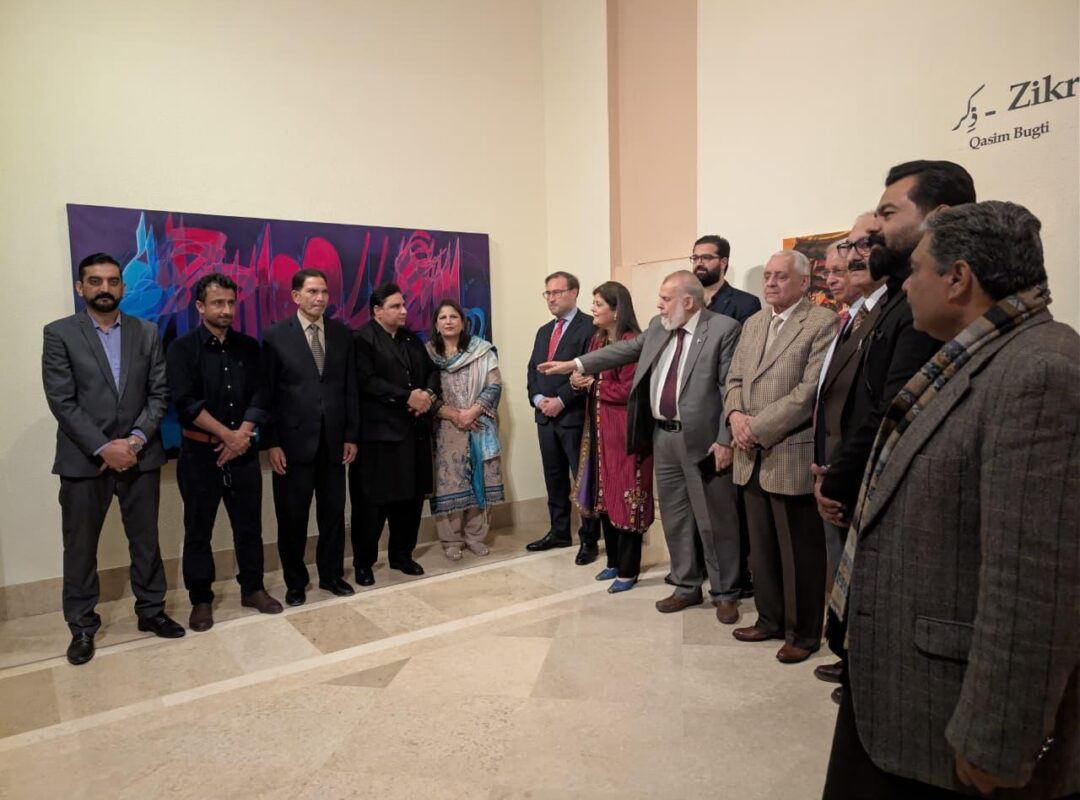 Islamabad, Pakistan — Renowned Pakistani artist Qasim Bugti has unveiled his latest solo exhibition titled “Zikr,” an evocative exploration of divine remembrance through the harmonious fusion of traditional Nastaliq calligraphy and miniature painting. The show, which opened to a distinguished gathering, pays deep homage to the Sufi poetry of Professor Mirza Ghulam Rasool Azhar, whose verses of Ishq-e-Haqeeqi (Divine Love) form the spiritual heartbeat of the collection.