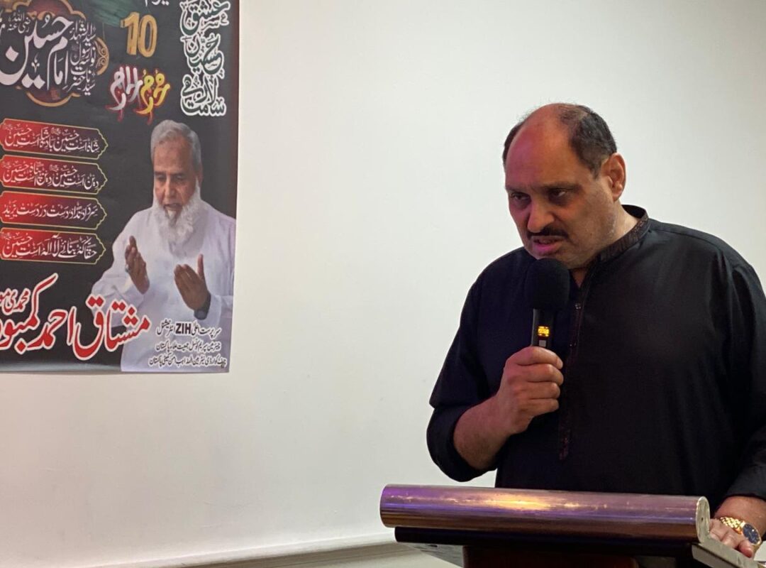 *Baba Mushtaq Kamboh*, in his stirring address, stated that out of the 124,000 prophets, it was only the descendant of one—Imam Hussain (may Allah be pleased with him)—who established the legacy of Karbala. This monumental sacrifice, made possible through the spiritual strength of his grandfather, the Holy Prophet Muhammad (peace be upon him), shook the entire Muslim Ummah to its core.