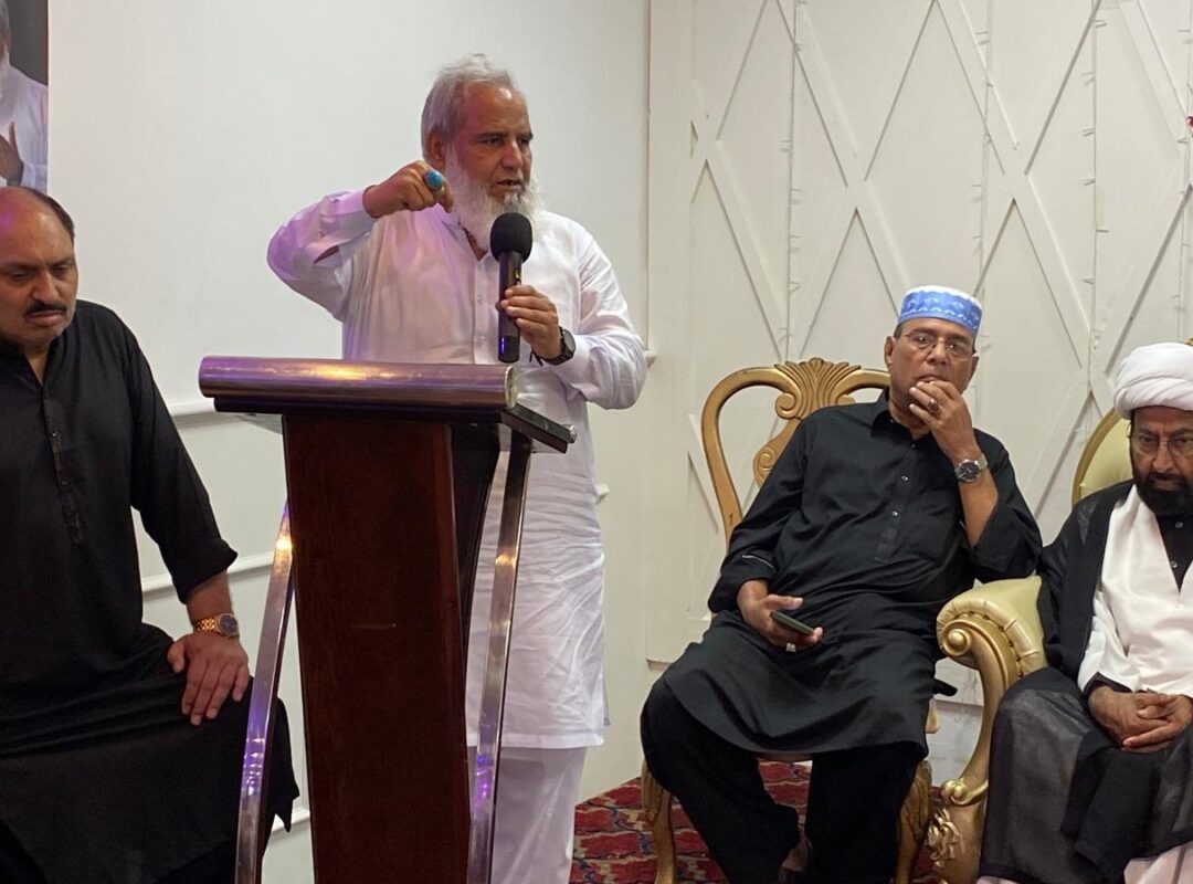 Safder Hamyyum, talking to the audience, said that I am humble like a dog and have no authority to talk about Imam Hussain. He said we need to be true Hussani in our lives and be practical. We need to keep practising Imam Hussain’s traditions practically. We need to bury hatred. We decorate the Quran Pak at tables and closets and never practice the Hussani School of Though.